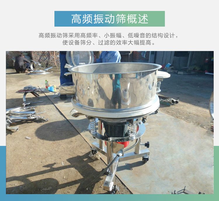 高頻篩也叫高頻振動篩,采用高頻率、小振幅、低噪音的結(jié)構(gòu)設(shè)計,使細粒物料在篩面上高速振蕩,破壞了漿液的表面張力,增加了物料與篩孔接觸的頻率,使設(shè)備篩分、過濾的效率大幅提高,廣泛應(yīng)用于食品、醫(yī)藥、化工、磨料、陶瓷、礦業(yè)、顏料、冶金、地質(zhì)、國防、電子等行業(yè)的漿料、粉料、顆粒生產(chǎn)的分級、過濾。方便的活動車架在工作場所可以隨意移動,不用進行復雜的設(shè)備安裝,高低可調(diào)、操作簡單、經(jīng)久耐用。