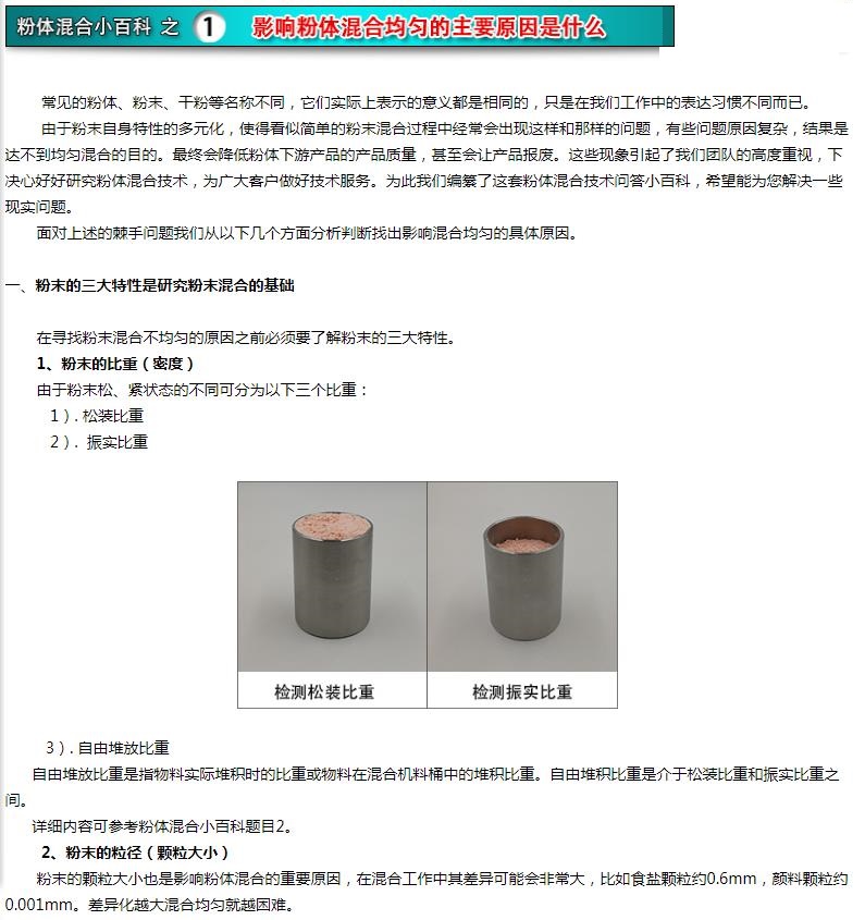解決方法是混合之前要針對這樣的粉體做相應的混前預處理。詳細內容參見粉體混合小百科題目7.