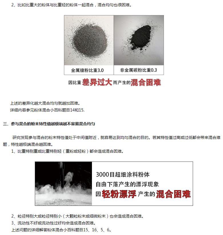 有些粉體因為潮濕、粘性過大、含有不易分散的假顆粒、含有纖維束狀物質等等均會造成混合困難。