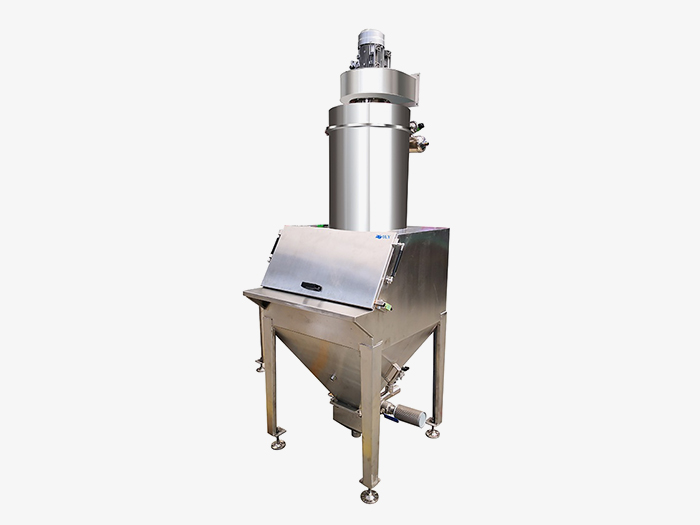 當(dāng)小袋物料需要解袋并倒入下一道工序時,只需人工直接拆包后投入到該系統(tǒng),投料時所產(chǎn)生的物料粉塵由集塵風(fēng)機(jī)進(jìn)行收集。