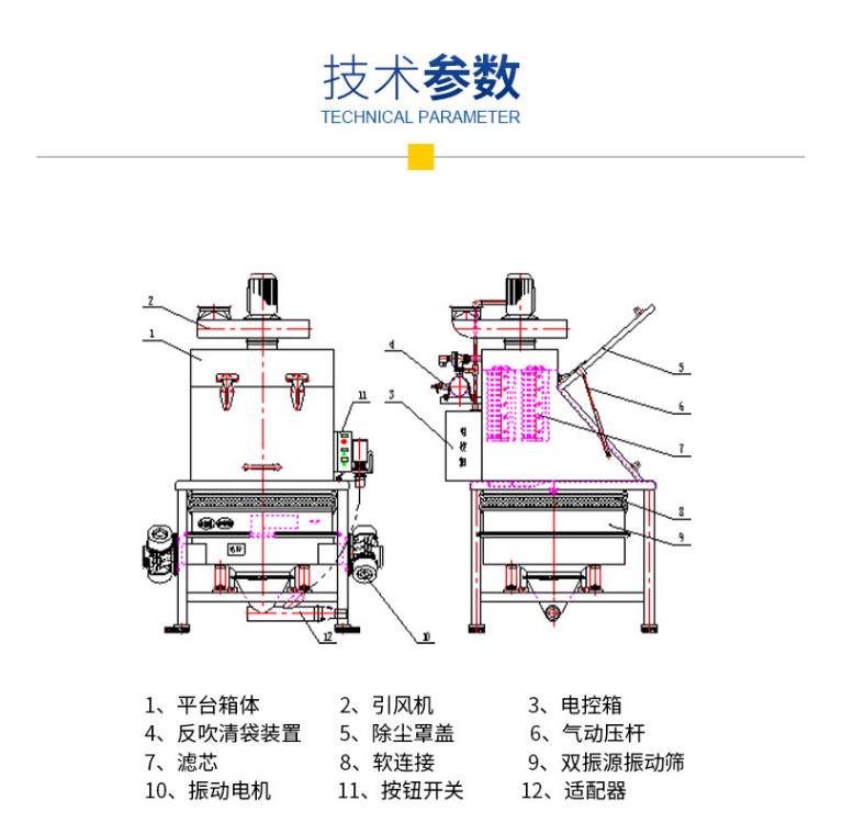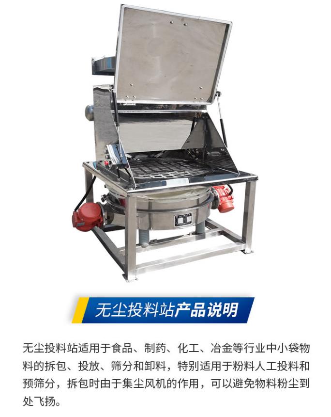 拆包時由于集塵風(fēng)機(jī)的作用,可以避免物料粉塵到處飛揚。